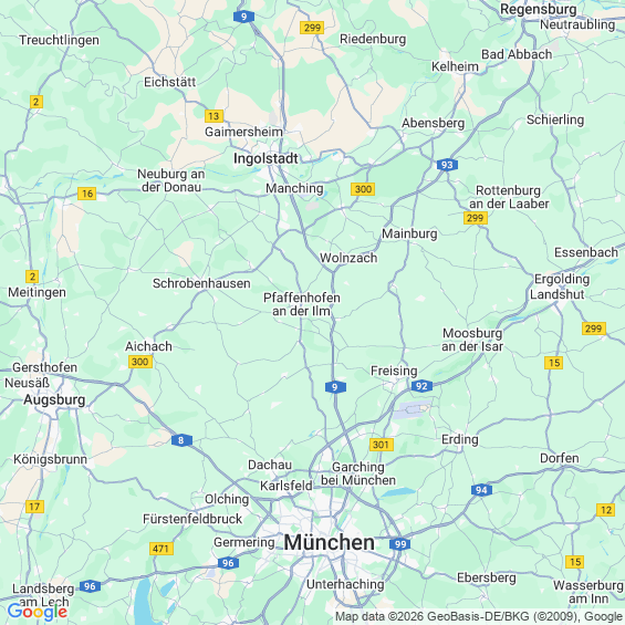 Städte in der Nähe von Pfaffenhofen an der Ilm