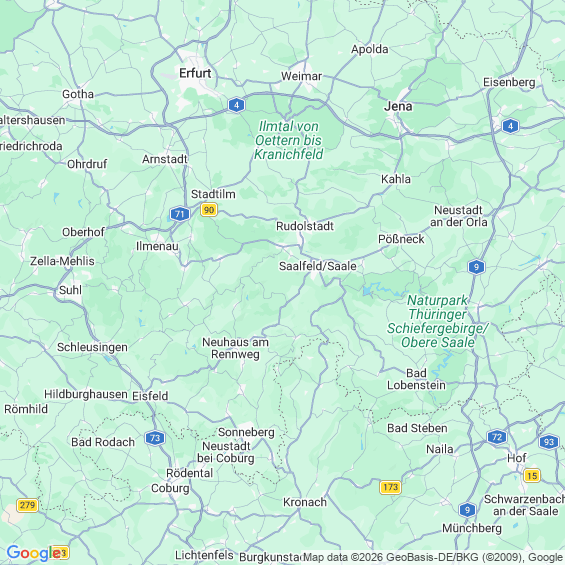 Städte in der Nähe von Saalfeld/Saale